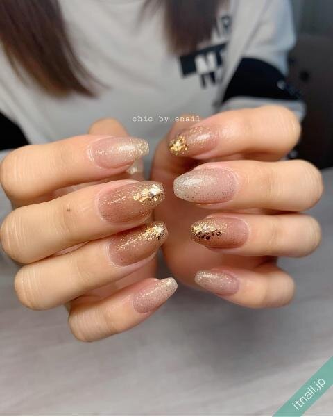エレガントに仕上がるゴールドラメのニュアンスネイル