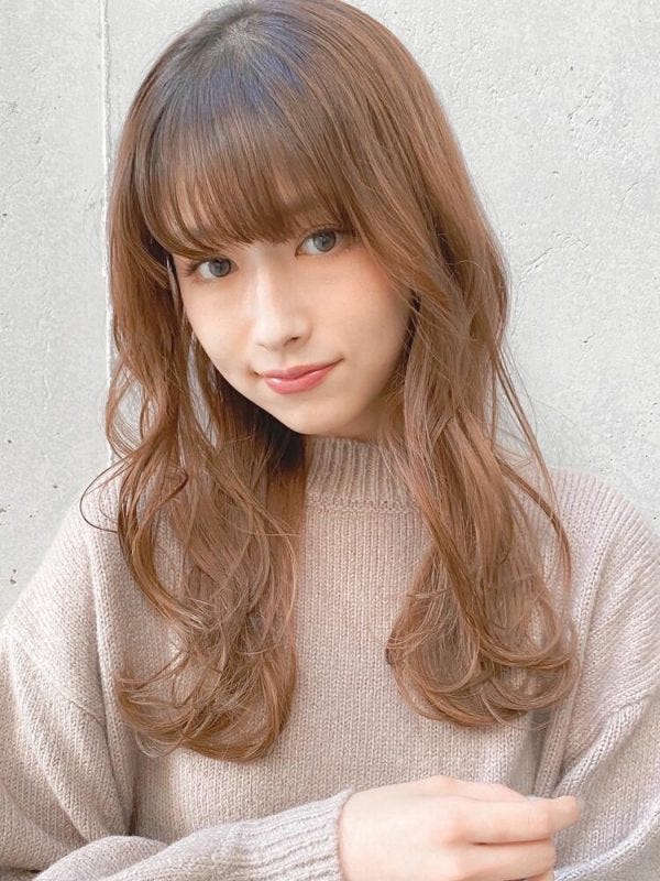 透明感抜群の明るめアッシュブラウンをゆるふわなロングに合わせると、かなり可愛い印象を出せます。