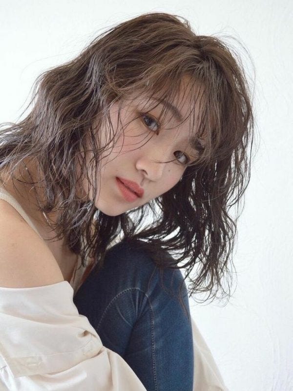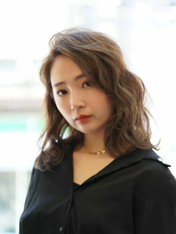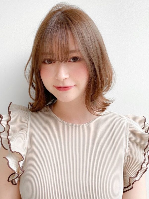 ゆるふわな可愛らしいミディアムは明るめアッシュブラウンで柔らかく仕上げると、さらにフェミニンになります。
