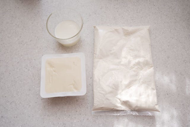 ホットケーキミックスとお豆腐を混ぜるだけ、とっても簡単です。