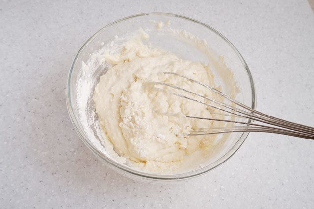 ② 豆乳、ホットケーキミックスを加えて粉っぽさがなくなるまで混ぜる。