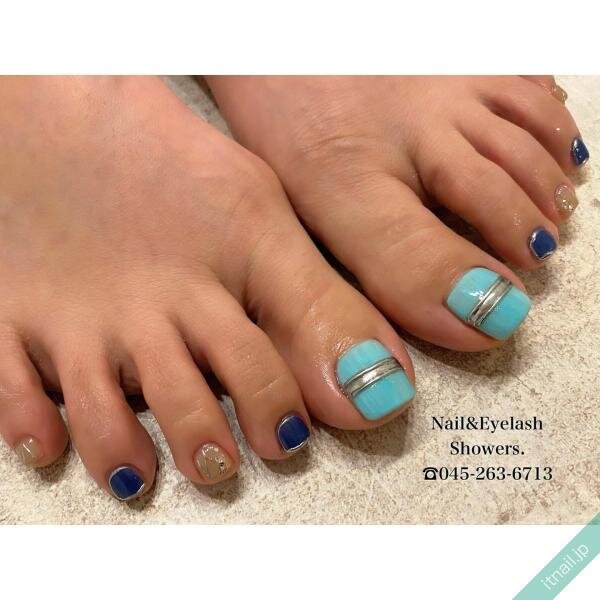 マットなリングデザインなら、クールな印象のある辛口フットネイルになります。シルバーリングと相性のいいブルーをベースにして、爽やかな仕上がりにするのが人気♡ブルーネイルをマットな質感にするのもおすすめです。