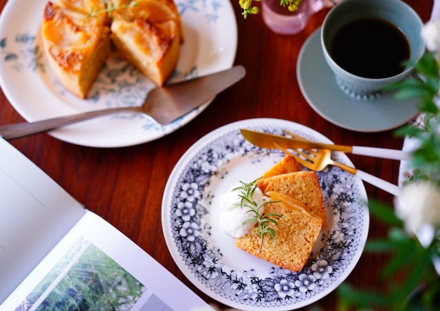 このケーキはふわっとしたケーキではなく、生地は焼菓子のガレットのような少しザクザクとした食感になります。リンゴのコンポートのしっとり感とザクザク感が意外とあうこのケーキ。