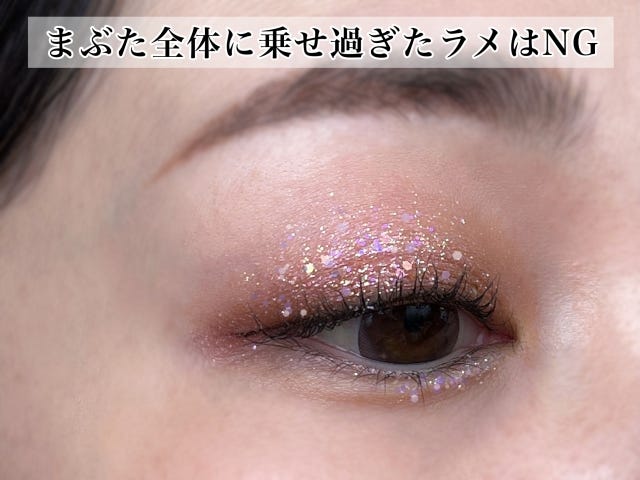ですが乗せ過ぎもNG。大粒のラメ・まぶた全体・さらには下まぶたにも!なんて盛り過ぎていませんか?