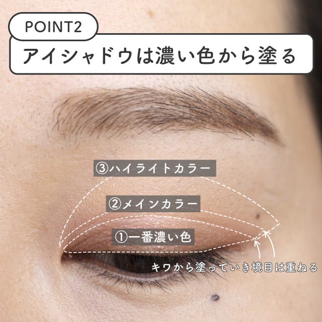【POINT2】アイシャドウは濃い色から塗る