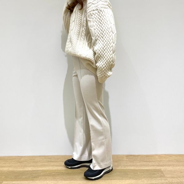 今回ご紹介する「イージーフレアパンツ」も、「脚のシルエットがきれいに見える」「脚が長く見える」と、スタイルアップ効果が狙えると絶賛されているアイテム。