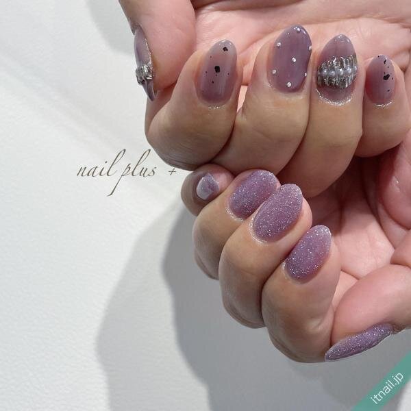 透明感を効かせたパープルネイルは、パールやラメを使って女性らしい華やかさを感じさせることでますます大人の美人ネイルに。艶めくシアーなパールカラーは、ワンポイントのアートで色の美しさを強調して。