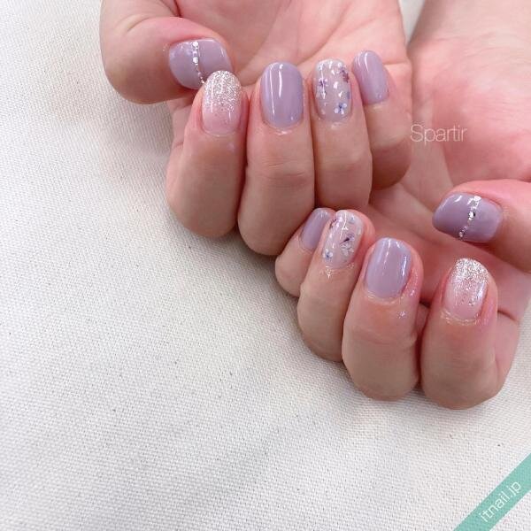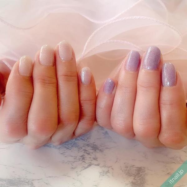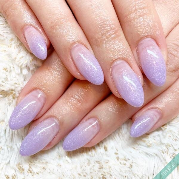 薄紫色に繊細なラメが含まれているネイルカラーで、上品な指先を楽しむのも人気があります。グラデーションにして色の変化を出すととってもおしゃれ!定番は爪の先端を濃くするデザインですが、縦グラデーションや逆グラデーションも可愛いです。