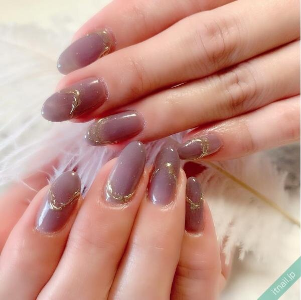 パープルにグレーを混ぜたような薄紫色は、落ち着いた大人向けのワンカラーネイルに仕上がります。アンニュイな雰囲気が魅力的で、柔らかいオーラはあるものの、ミステリアスな印象もあっておしゃれです。