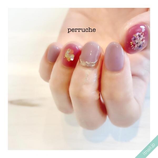 押し花を使ったフラワーネイルも大人気♪ちゅるんっとした質感のネイルに置くことで、可愛らしさたっぷりの春ネイルになります。薄紫色と少し赤みがかったパープルカラーの組み合わせも可愛いのでおすすめです。
