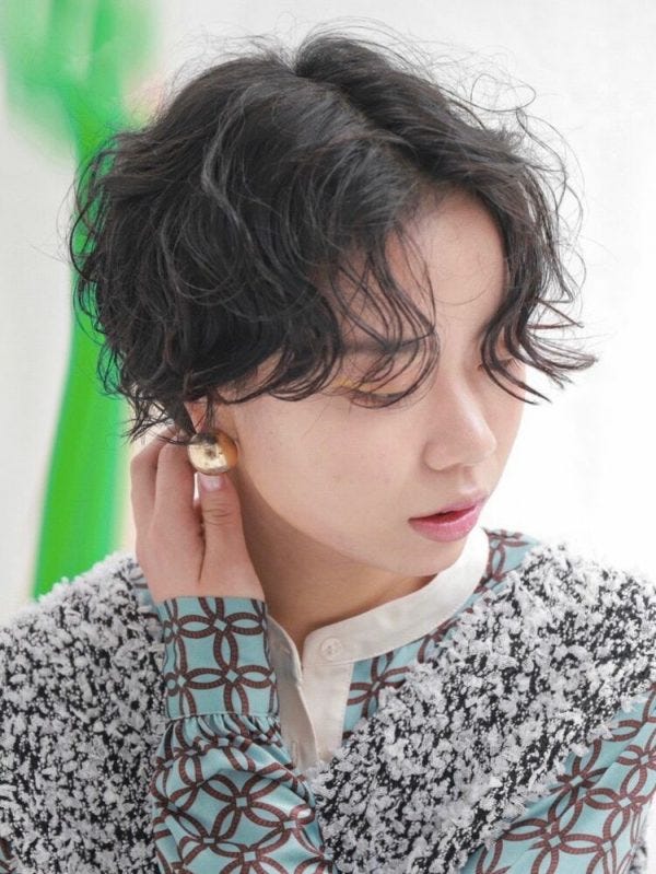 画像のようにゆるめのパーマならふわふわとした、エアリーな黒髪ショートが完成です。