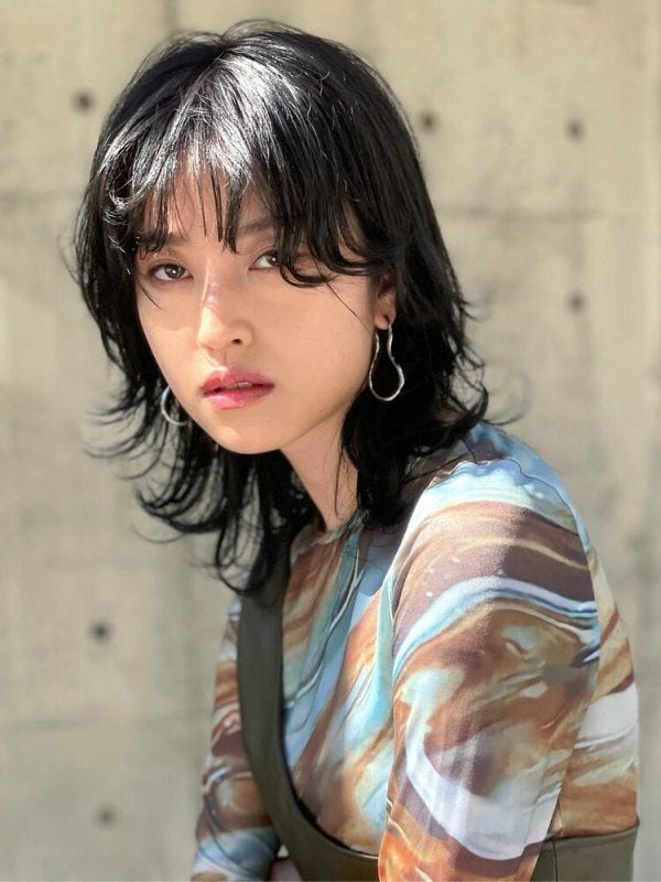 毛先にレイヤーを入れて動きが出やすく仕上がる、ミディアムウルフも人気のレディースヘアです。