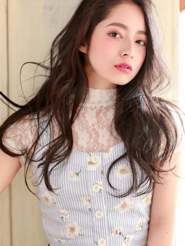 ゆるふわおしゃれなパーマの黒髪ロング