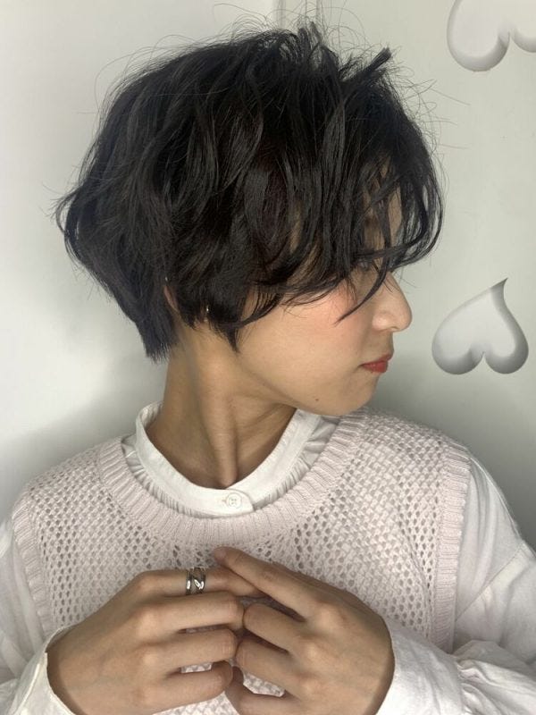 スタイリングが楽しいパーマの黒髪ショート