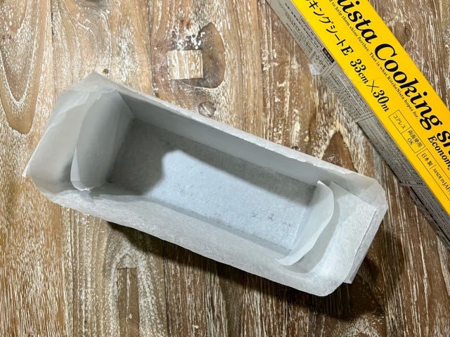 ・パウンド型に、クッキングシートを敷いておきます。