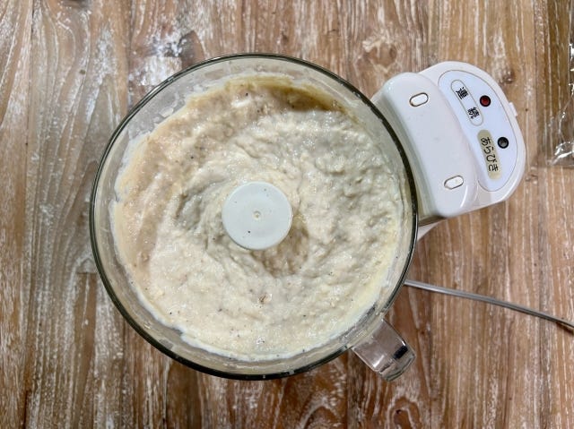 ① フードプロセッサーに、材料の記載順に入れて、その都度攪拌します。