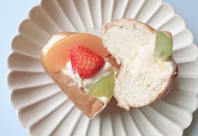 一口食べてみるとふわふわのコッペパンに、カスタードホイップの濃厚な甘さ、フルーツのジューシーさが絶妙なバランスで美味しい。