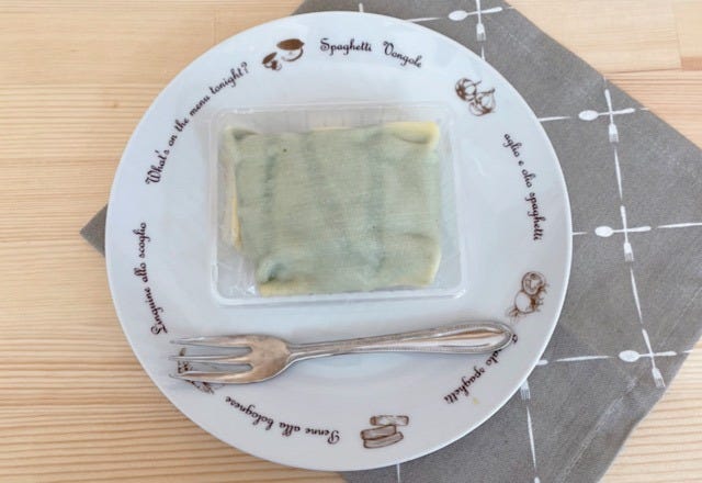 さっそくミニストップの「しあわせクレープ〜お濃茶〜」を食べてみたので、気になる中身を紹介していきます。