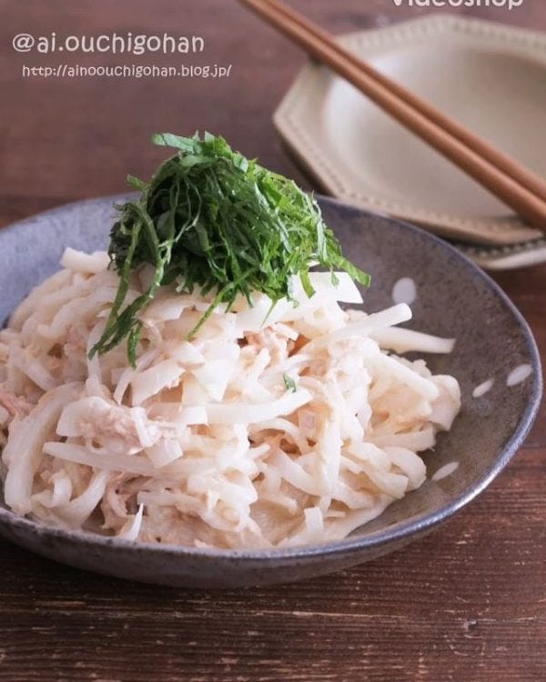 こちらは市販の青じそドレッシングを使った、簡単なのにやみつきになる大根サラダのレシピです。