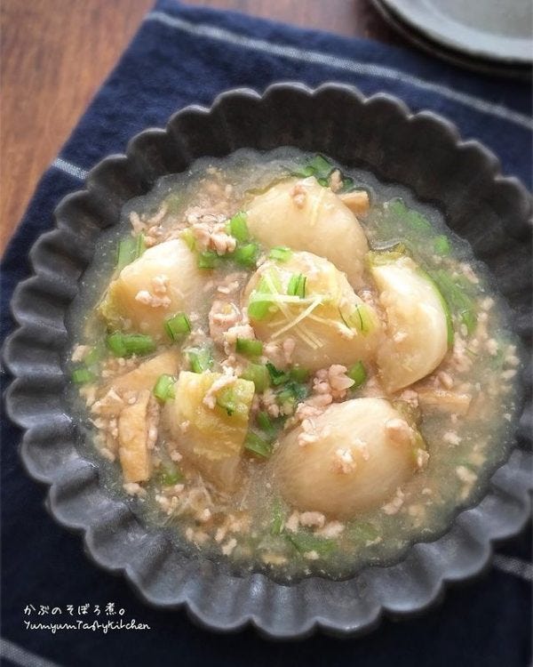 アジフライにはやさしい煮物のかぶのそぼろ煮