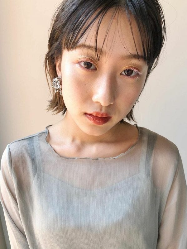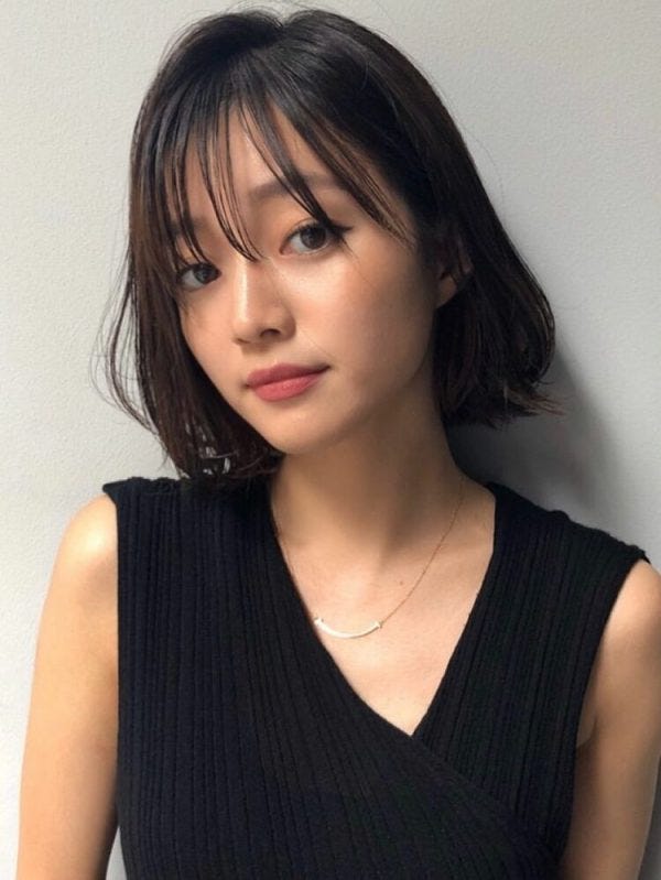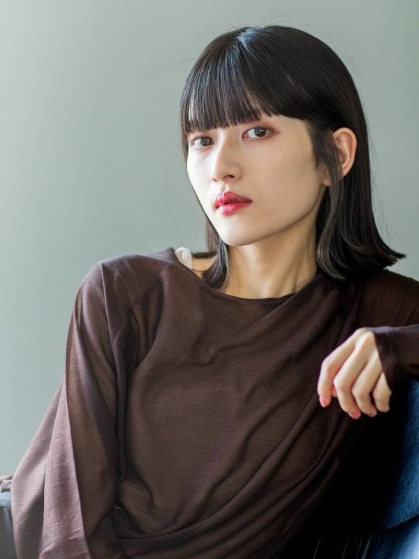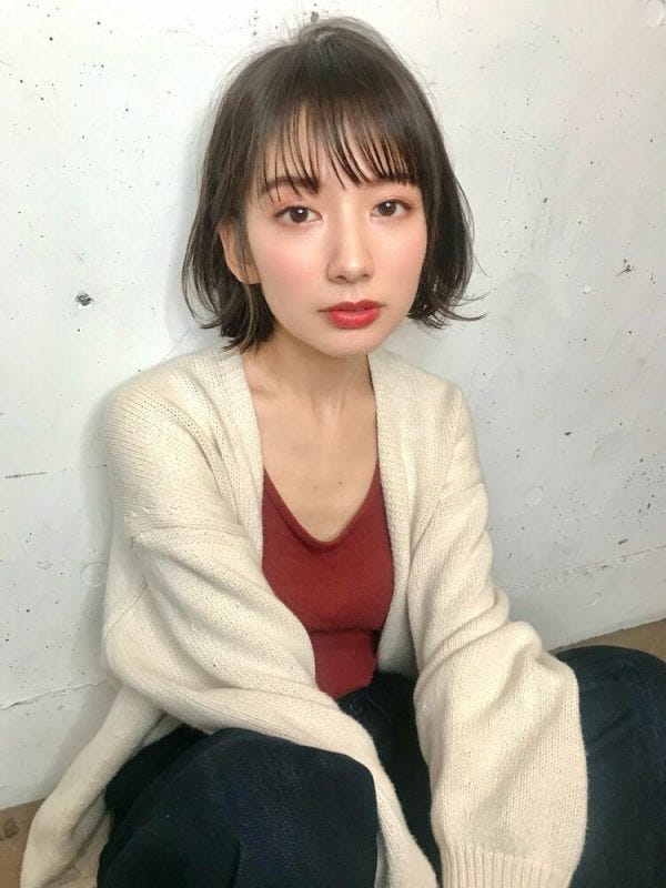 Aラインでカジュアルな印象もありますが目の上ギリギリくらいのシースルーバングを合わせて、しっとりとしたフェミニンさもしっかり演出。
