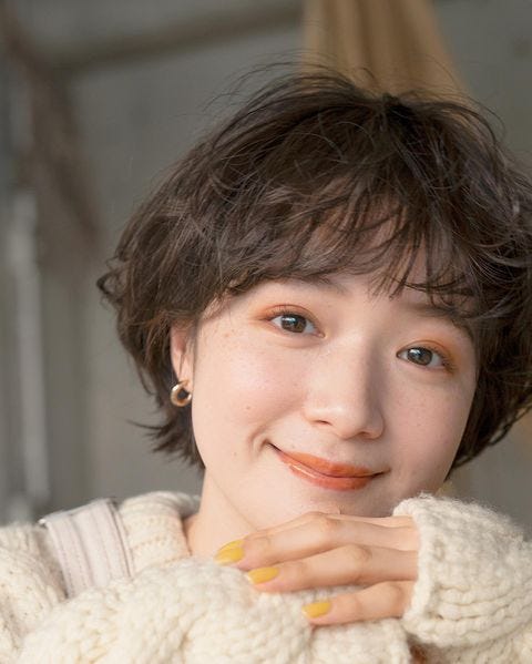 また、パーマをかけることでふんわりとやわらかな印象のショートヘアとなるため、冷たい印象を与えがちな面長さんにおすすめです。