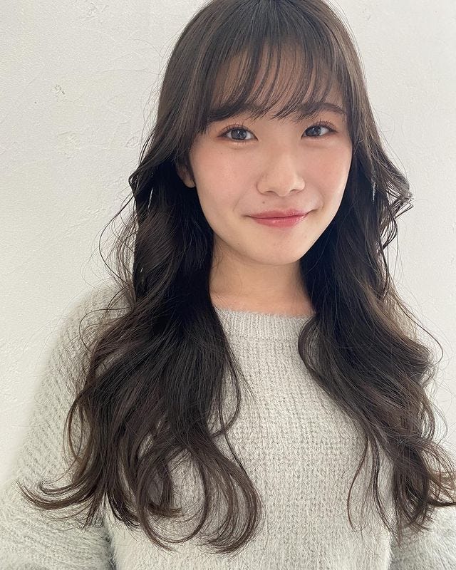前髪あり、横幅があるシルエットの髪型のため面長さんにぴったりで、アッシュ系ヘアカラーにすることでトレンド感がアップしておしゃれな仕上がりになりますよ。