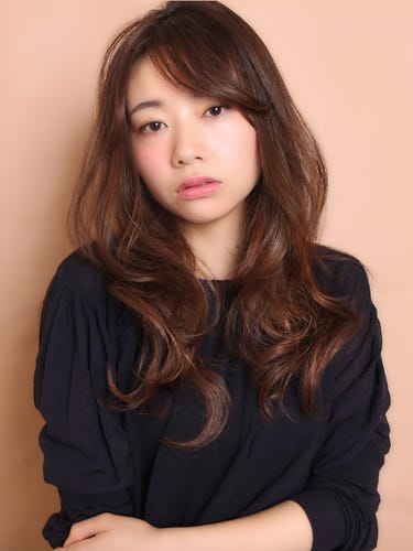 暗髪のロングでも地味になりすぎず、きれいめで女性らしい雰囲気が素敵ですね。さりげないひし形シルエットで、小顔効果も期待できる魅力が詰まった髪型です。