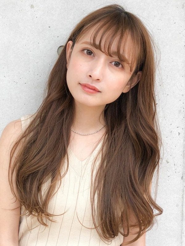 ふんわりと自然に広がる大人っぽくきれいなロングであり、アッシュ系ヘアカラーにすることでトレンド感がある仕上がりにできますよ。