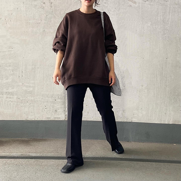 ストレッチが効いているから、伸びが良く穿き心地も楽ちん。身体のラインを拾いにくく、センタープレスで縦のラインが強調されるので、美脚効果を実感している人が多いみたいです◎