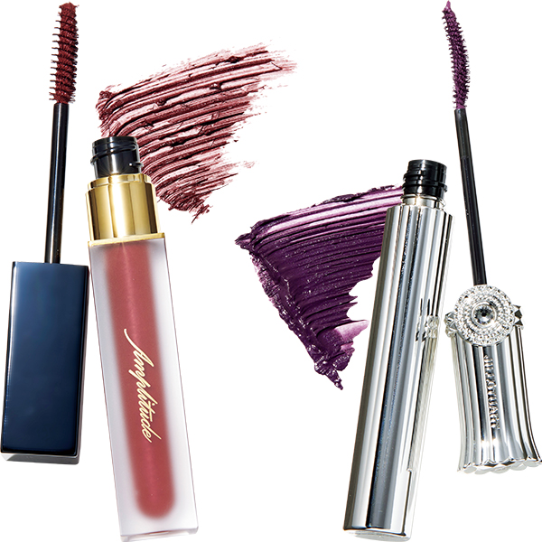 「たっぷり塗っても大丈夫」(千吉良さん)。左、エクストラロング カラーマスカラ 03 ¥4,840(Amplitude)右、ジルスチュアート ブルーミングラッシュ ニュアンスカーラー 04 ¥3,300(ジルスチュアート ビューティ)