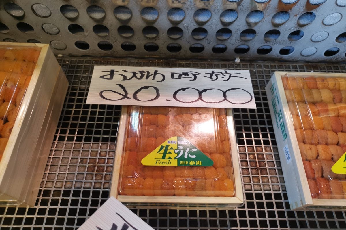 先日やっと値下がりした買い時だったウニだが、先日川崎北部市場で値段を見たところ、数倍の値上がりを見せていたのだ。