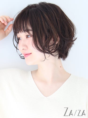 ランダムな毛先の動きが大人可愛いショートボブです。パーマアレンジにすることでラフな雰囲気を再現しやすく、おしゃれで爽やかな印象の髪型となります。
