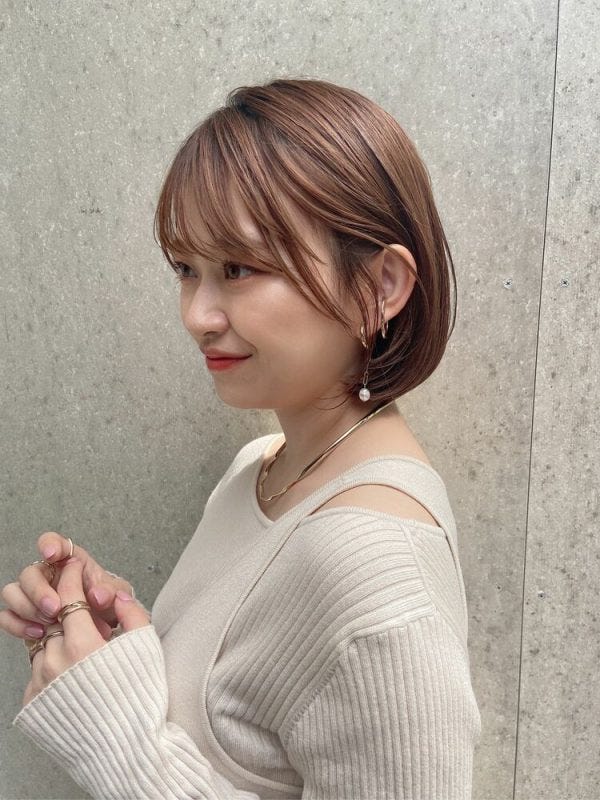 明るめの髪色でも落ち着いた雰囲気のショートボブのため大人女性にも似合いやすく、おすすめですよ。