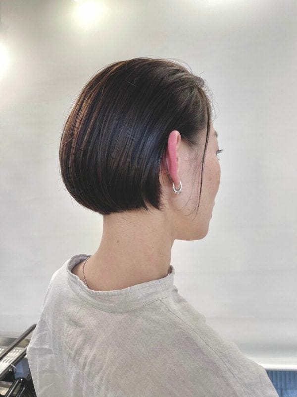 耳かけにすると顔周りがすっきりとして清潔感のあるショートボブの髪型に仕上がりますね。