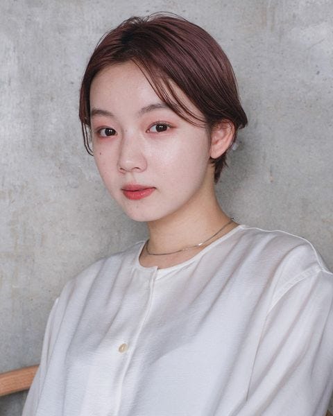 丸みと重さのあるショートボブも適度に明るいヘアカラーで、軽やかで垢抜けた雰囲気を実現しています。