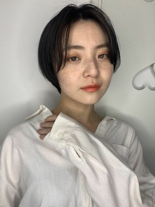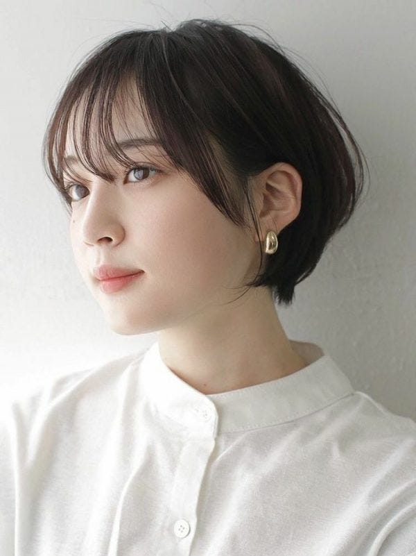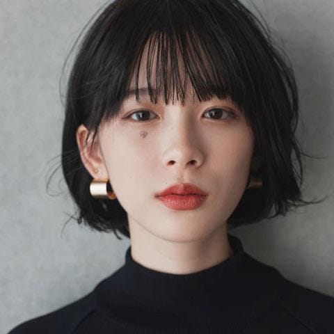 前髪なしで黒髪のショートボブは、おしゃれに見せるのが難しい印象があります。
