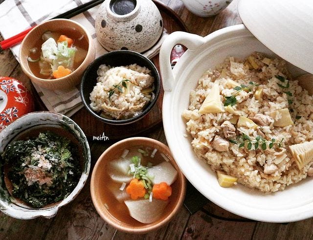 たけのこは下処理が大変ですが、旬のたけのこが手に入ったら作りたいのがたけのこご飯。炊飯器でも作れますが土鍋や厚手の鍋で炊き上げると美味しいですよ。
