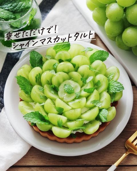 マスカットの間にミントをトッピングすれば、おしゃれに見えますよ。