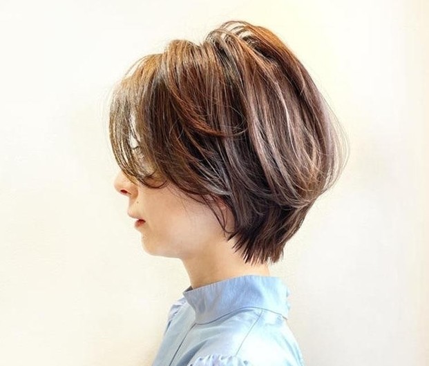 ハンサムな印象の強いマッシュヘアも、カットとカラーで大人の女性のための“こなれヘア”へ格上げ。顔周りはほんのり丸みと重さを残し、全体のシルエットは軽く仕上げる。トップを中心にレイヤーを入れることで、360度どこから見ても美しいふんわりシルエットを実現。