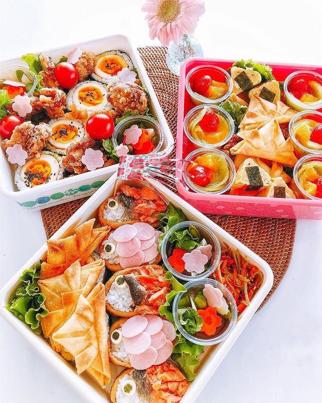 たけのこごはんや混ぜご飯を握ったり、梅干しや塩鮭、肉味噌を乗せたり、具材は中に入れて海苔でデコレーションしても可愛いですよ。
