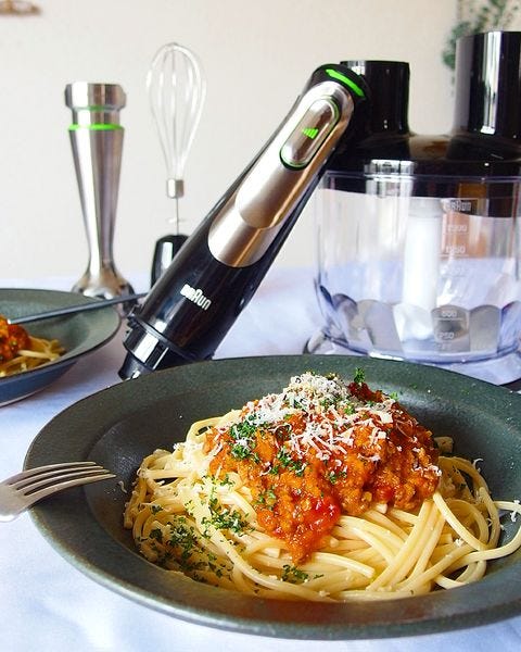 こちらのミートソースのレシピは、ハンドブレンダーを使い、パスタを茹でている間にソースを作れる簡単なレシピです。