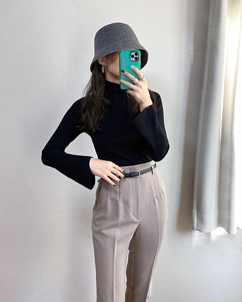 ハイウエストデザインに加え、脚部分とウエストの切り替えがないことで、より脚長効果も期待できそう。