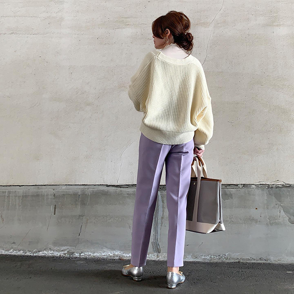 カラーはオフホワイト / グレー / ブラック / ライトパープルの4色展開。ベーシックに使える色も気になるところですが、今買い足すなら断然『ライトパープル』がおすすめです!