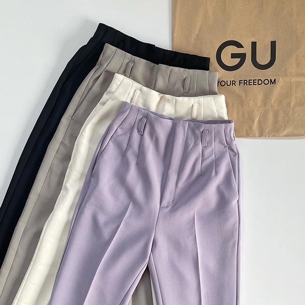 GUの「ハイウエストテーパードパンツZ」(税込1990円)は、美しいシルエットが特徴的な1本。ウエストのゴムは内蔵され、ギャザーが寄らない仕様になっているため、すっきりとした見た目が叶いますよ。