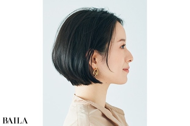 ヘアスタイルはおしゃれの輪郭。髪が決まれば、おのずとこなれて見える。働く大人が褒められる、最旬ヘアスタイルをお届け! 今回は、GARDEN Tokyoの本木亜美さんが「前髪なしの重めショートボブ」を提案。
