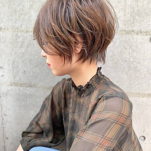 【ショート系】横顔美人が叶うおすすめの髪型④旬のココアブラウンはショートが正解