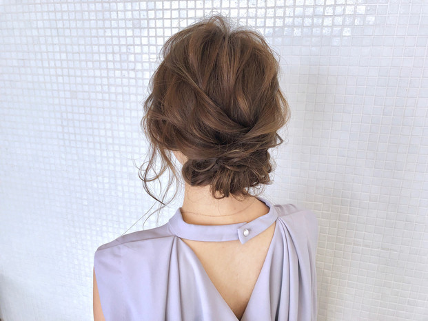 サイドを編み込んでゴールドピンで留めれば、オフィスでもOKな程よい華やかスタイルが完成!