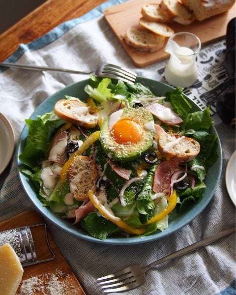 こちらのレシピはアボカドと卵も添えたボリュームサラダで、冷製パスタの献立でもこの一品を合わせるだけで満足できます。