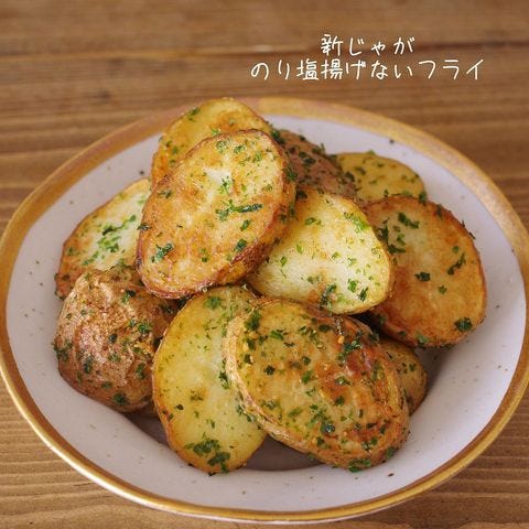 下茹でも必要なく、フライパンで少ない油でじっくり揚げ焼きにします。コンソメと青のりのクセになる味付けは手が止まらなくなりますよ。